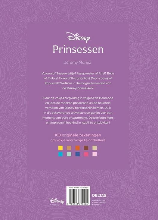 Vaiana of Sneeuwwitje? Assepoester of Ariel? Belle of Mulan? Tiana of Pocahontas? Doornroosje of Rapunzel? Welkom in de magische wereld van de Disney-prinsessen! Kleur de vakjes zorgvuldig in volgens de kleurcode en laat de mooiste prinsessen uit de bekende verhalen van Disney tevoorschijn komen.