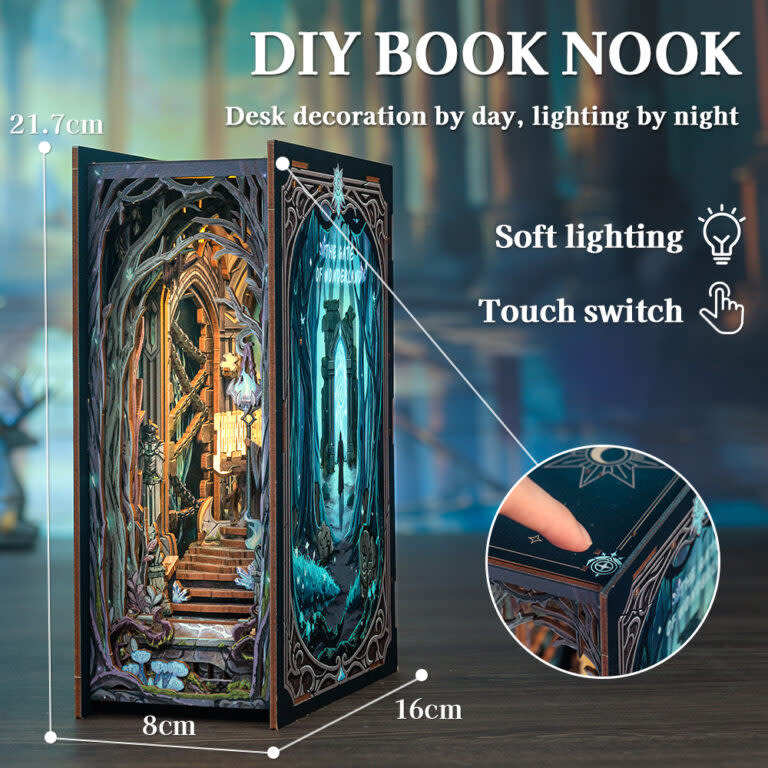 Een zachte gloed straalt van het boek en de bladzijden slaan automatisch om, gevuld met een eeuwenoude magische aura.