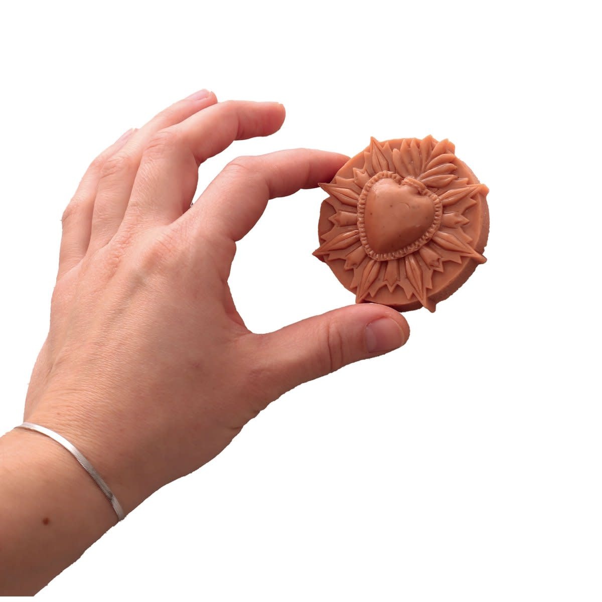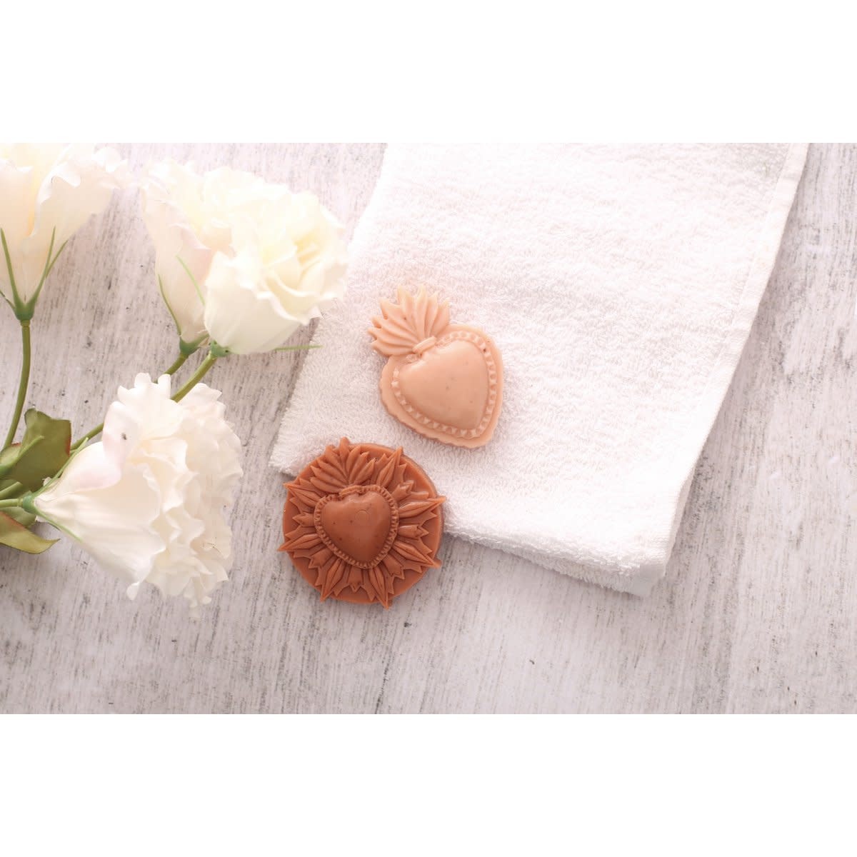 Het Ex-voto ontwerp past in de huidige trend met de terugkeer van symbolische objecten. Om unieke zepen te creëren met krachtige symbolen van liefde en bescherming. Met de kit kunt u 5 zepen maken met behulp van de “Melt & pour”-techniek, die u au bain-marie of in de magnetron kunt laten smelten. Originele mal ontworpen en gemaakt in onze werkplaatsen in Frankrijk. Afmetingen zeep: 70x50x15 mm en diam 65mm dik. 15 mm