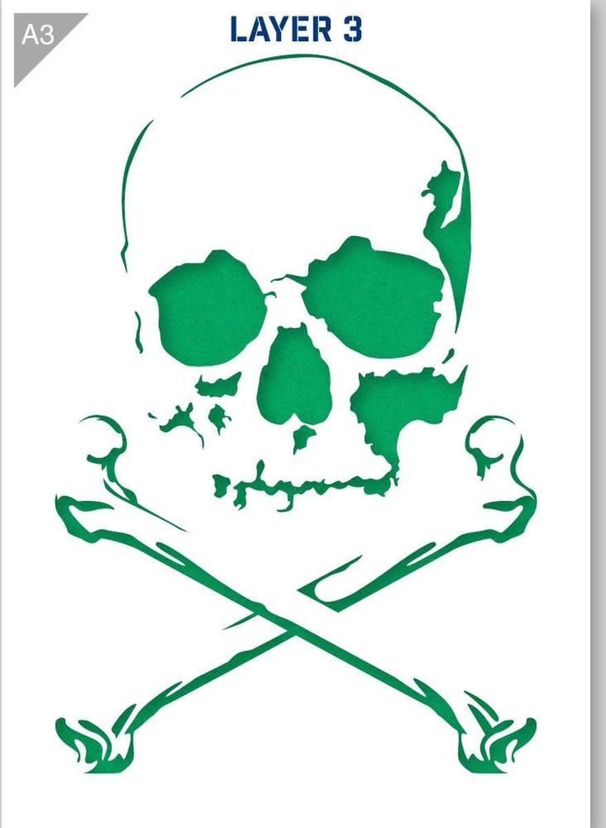 Doodshoofd sjabloon - 3 lagen kunststof A3 stencil