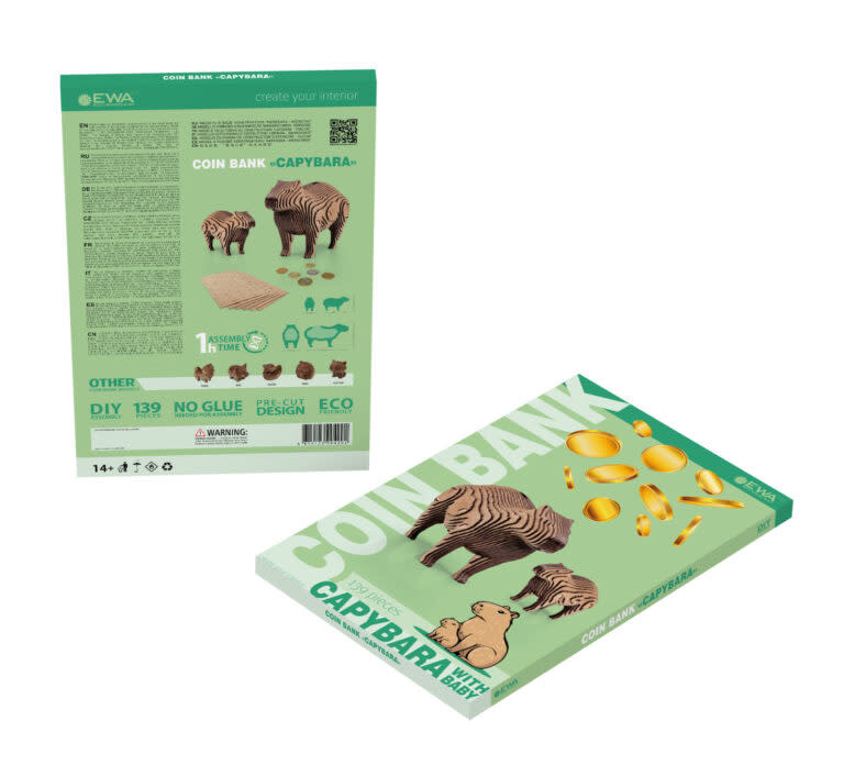 De set bevat een grote capibara en haar baby, wat het in elkaar zetten nog leuker en interessanter maakt. Eenmaal voltooid, is je capibara niet alleen een decoratief element voor je interieur, maar ook een betrouwbare plek om munten en kleingeld in te bewaren. De spaarpot heeft een speciaal vak dat geopend kan worden om het gespaarde geld eruit te halen.