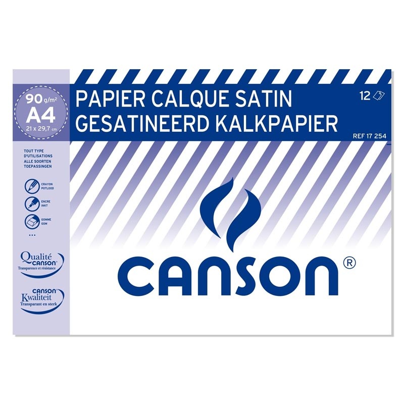 Het mapje Kalkpapier Canson® Satin bestaat uit een zeer gesatineerd kalkpapier, doorschijnend en met een microfijne oppervlak.