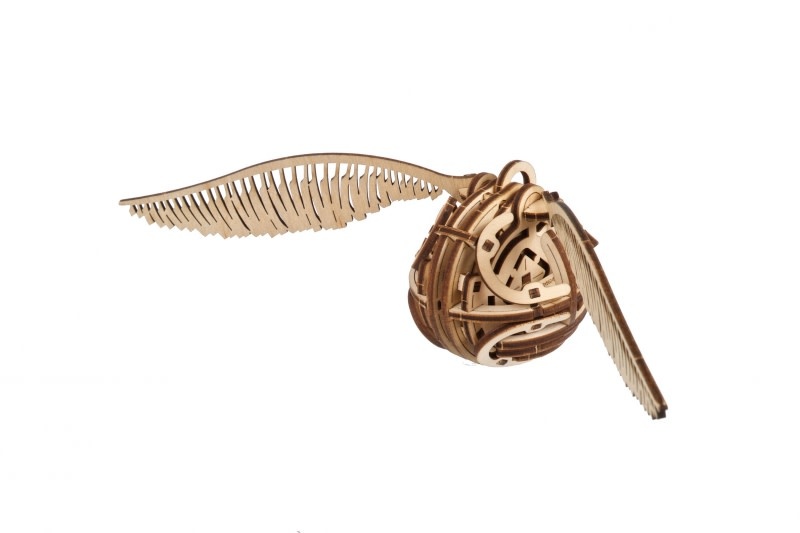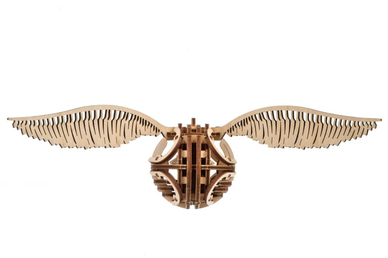 Het ontwerp van de Ugears Snaai is gebaseerd op de beschrijvingen en afbeeldingen in de geliefde Harry Potter-boeken en -films. Dit door een veer aangedreven ‘doe het zelf-model’ heeft een trekkoord aan de bovenkant die een interne trommel opwindt, waardoor de elegante, gevederde houten vleugels gaan fladderen wanneer het koord wordt losgelaten. Houd de Snaai vast en kijk hoe hij probeert te ontsnappen terwijl hij met zijn vleugels klappert, of houd de trekring vast bij het model eronder en sta versteld wanneer de Snaai omhoog vliegt! Wanneer de Snaai niet wordt gebruikt, rust deze op de slanke en stijlvolle houder. Het model kan ook aan een haak hangen met behulp van het oogje aan het trekkoord, zodat hij in de lucht hangt. Het model heeft een stil ratel systeem en de spanning van de veer wordt geregeld met behulp van een slinger, om de werking van de vleugels te regelen. De houder en de behuizing van de Snaai zijn gemaakt van 3 mm dik kunstkwaliteit composiethout, terwijl de twee delicate vleugels zijn gemaakt van 1,5 mm dik composiethout. Een reservevleugel is inbegrepen in de set.