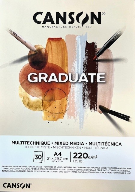 Ideaal voor mixed media (potlood, viltstift, aquarel, acryl, acrylstift, enz.)- Dubbelzijdig: generfd en glad - Gewicht: 220 g/m² - Verpakking: Gelijmde blokken 1 zijde- Kleuren: naturel