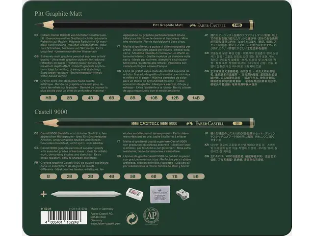 Grafietpotlood Faber-Castell Pitt Mat 8st. en 9000 8st. in blik