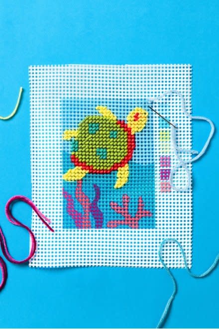 Kit tapisserie "tortue" à réaliser par des enfants à partir de 8 ans.