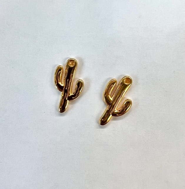 hanger metaal cactus 12x21x1.9mm goudkleur 2st