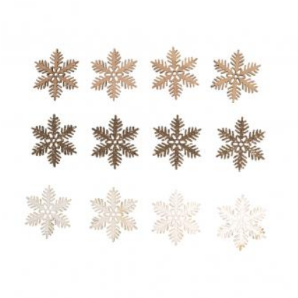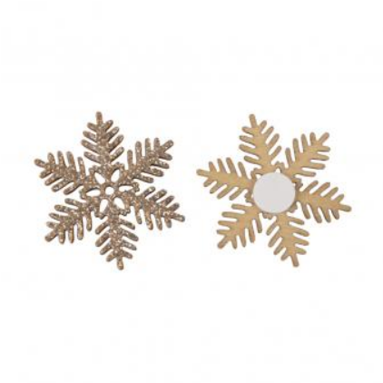 Hout strooidelen sneeuwvlok m glitter,4 cm, met lijmdot, 12st.