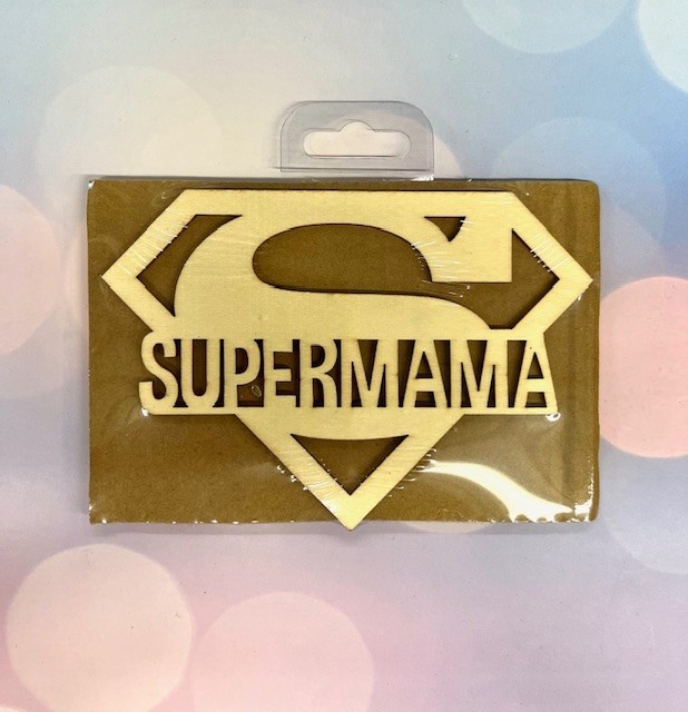 Houten bordje - SUPERMAMA - ca. 14,5x10cm