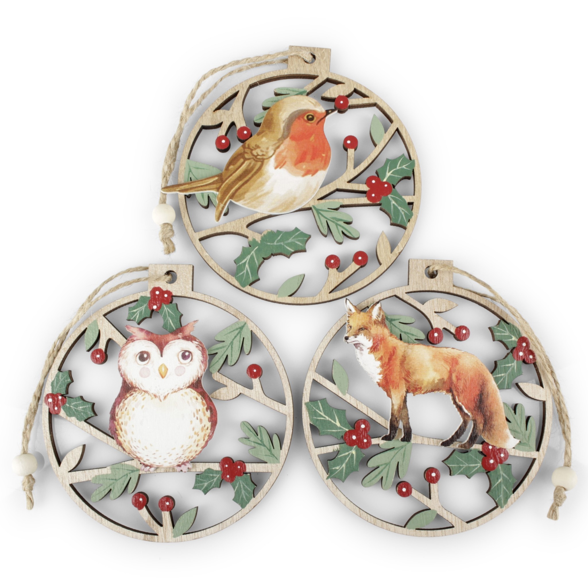 Houten hanger met bosdieren Ø 10 CM / 22 CM - 3 DESIGNS
