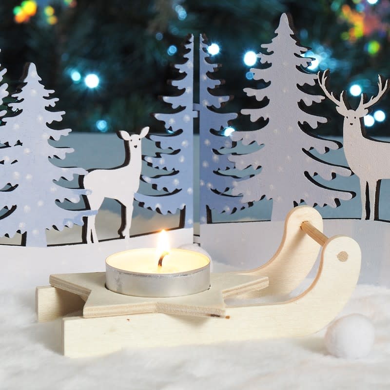 De slee kaarsenhouder meet 11,5x4x8,5 cm.