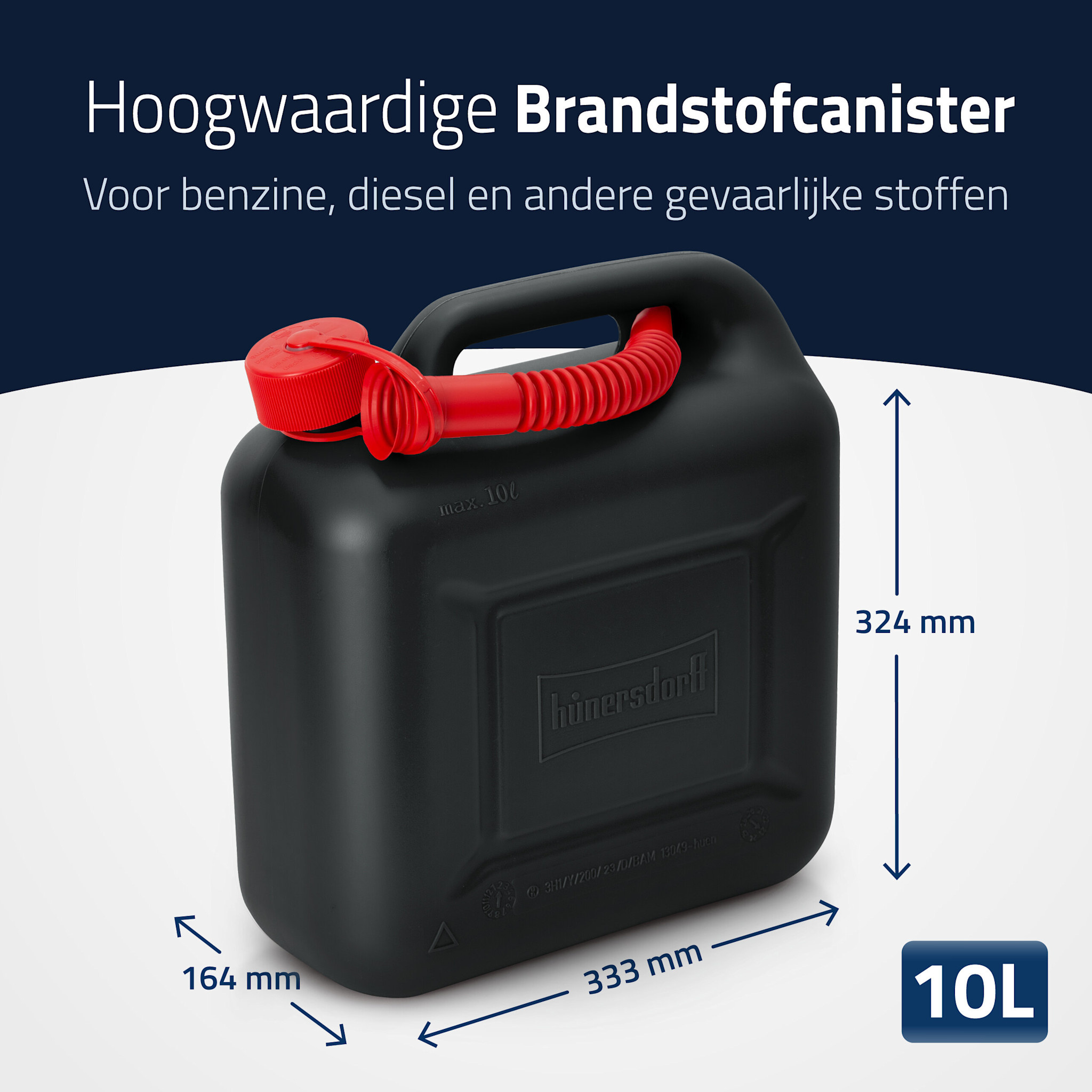 Brandstofjerrycan STANDARD 10 l, zwart, HD-PE met UN-goedkeuring voor benzine, diesel en andere gevaarlijke goederen