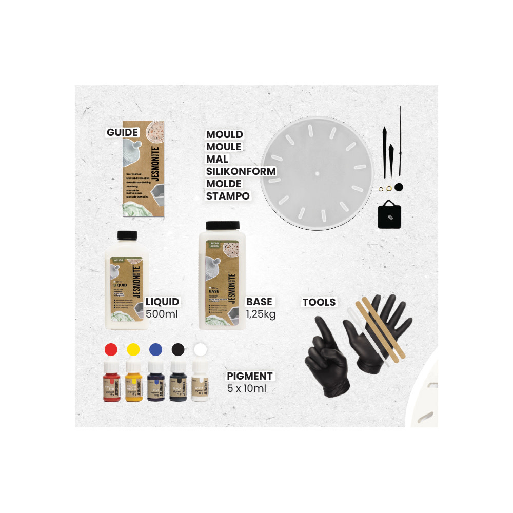Jesmonite is een niet-giftige acrylhars waar je de mooiste decoratieve creaties mee kan maken. De kit bevat alles wat je nodig hebt, inclusief pigmenten, herbruikbare siliconen vormen en stapsgewijze instructies die je door elke fase leiden.