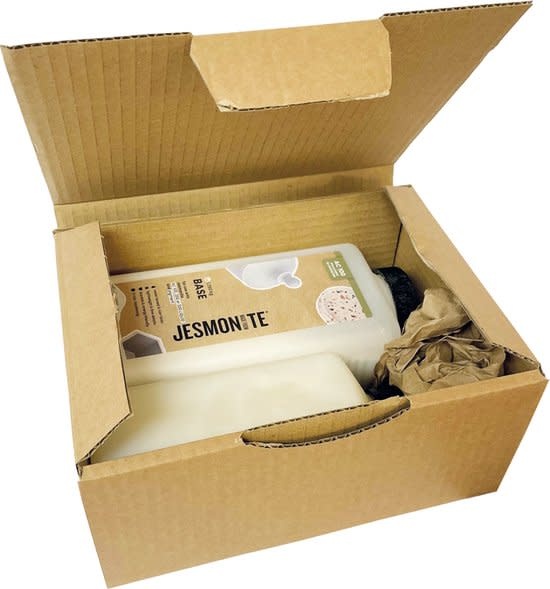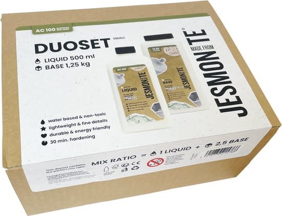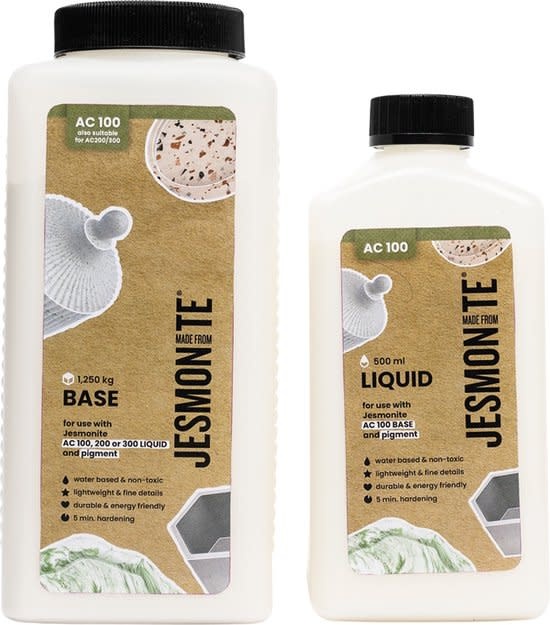 Jesmonite creatieve gietset AC100 500ml vloeistof en 1250gr basisMet de Jesmonite creatieve gietset kun je eindeloos experimenteren met kleuren, texturen en afwerkingen! Deze milieuvriendelijke watergedragen hars is perfect voor het maken van unieke sieraden, schaaltjes, onderzetters en zelfs tafelbladen. Het materiaal is veilig in gebruik en bevat geen schadelijke chemicaliën, waardoor het ideaal is voor creatieve projecten thuis of op school.De set bestaat uit 500ml Jesmonite liquid en 1250gr Jesmonite base. Meng eenvoudig 1 deel vloeistof met 2,5 delen poeder en ontdek een wereld vol creatieve mogelijkheden. Gebruik Jesmonite AC100 zowel binnen als buiten – vergeet alleen niet een sealer te gebruiken als je je creaties buiten wilt laten schitteren!Extra informatieMilieuvriendelijke watergedragen harsVeilig in gebruik zonder schadelijke chemicaliënGeschikt voor binnen- en buitengebruikBevat 1250 gram basispoeder en 500 ml vloeistof.
