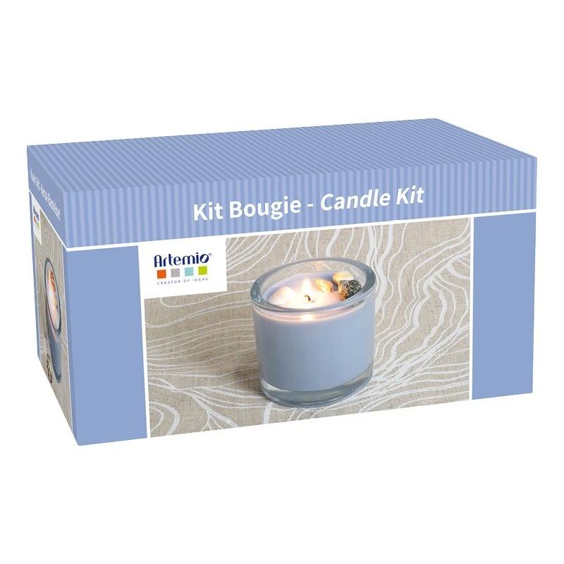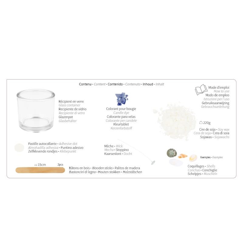 De kit bevat al het benodigde materiaal om een kaars met inzetstuk te maken.