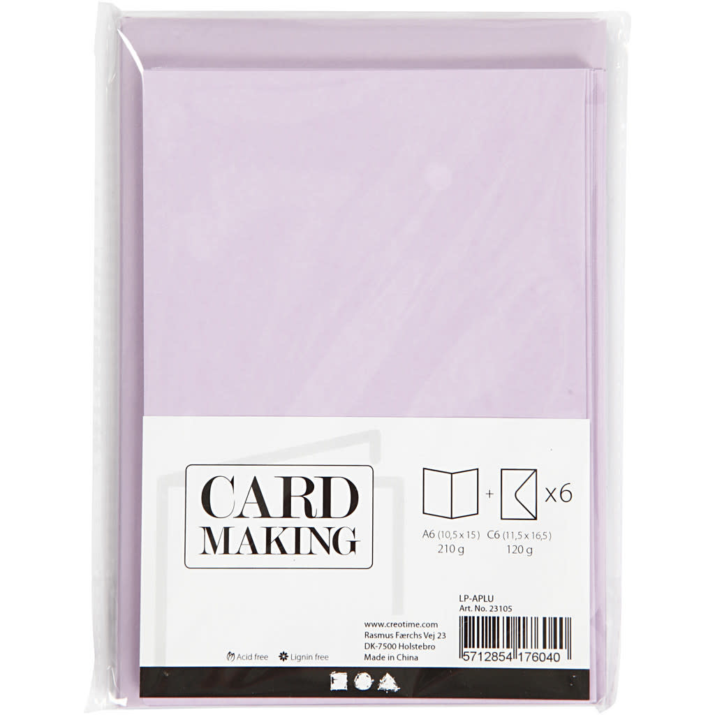 Kaarten + omslagen, Lila, 6st