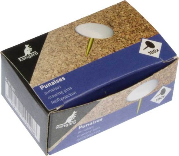 Kangaro: Duimspijkers, doosje met 100 stuks - Wit