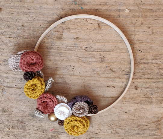 Wil je je interieurdecoraties maken en haken ontdekken? Met deze kit kun je een makkelijke en leuke gehaakte bloemen- en bladkrans maken.