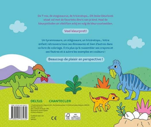 Aan dit leuke kleurboek vol coole dino's beleeft je kind ongetwijfeld heel wat plezier. De T-rex, de stegosaurus, de triceratops… alle favoriete dinosaurussen wachten om ingekleurd te worden. Bovendien ontwikkelt je zoon of dochter een goed opmerkingsvermogen door de kleurvoorbeelden voor elke kleurplaat te volgen. Veel kleurpret!