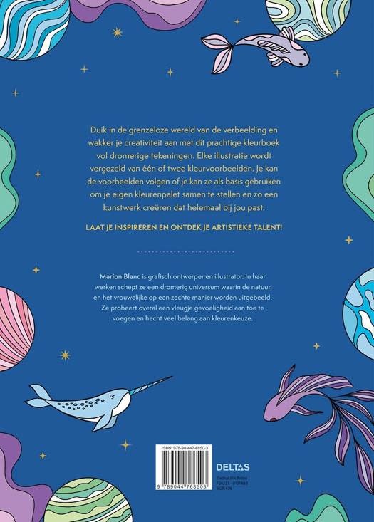Met dit prachtige kleurboek vol dromerige tekeningen duik je in de grenzeloze wereld van de verbeelding en wakker je je creativiteit aan. Elke illustratie wordt vergezeld van één of twee kleurvoorbeelden. Je kan de voorbeelden volgen of je kan ze als basis gebruiken om je eigen kleurenpalet samen te stellen en zo een kunstwerk creëren dat helemaal bij jou past. Laat je inspireren en ontdek je artistieke talent! Marion Blanc is grafisch ontwerper en illustrator. In haar werken schept ze een dromerig universum waarin de natuur en het vrouwelijke op een zachte manier worden uitgebeeld. Ze probeert overal een vleugje gevoeligheid aan toe te voegen en hecht veel belang aan kleurenkeuze.