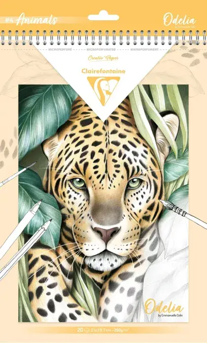 Het kleurboek is uitgevoerd als spiraalblok met microgeperforeerde bladen van 21 x 29,7 cm. Elke illustratie is drie keer opgenomen, zodat je kunt experimenteren met verschillende kleurpaletten en technieken. Het stevige 250 grams Clairefontaine mixed media papier voelt prettig aan en kan goed omgaan met meerdere lagen kleur. Je kunt dit papier gebruiken met viltstiften, kleurpotloden, verf en aquarel. Ideaal als je graag afwisselt tussen technieken of één afbeelding op verschillende manieren wilt uitwerken. Door de microperforatie scheur je de pagina’s eenvoudig en netjes uit, bijvoorbeeld om in te lijsten of cadeau te geven.