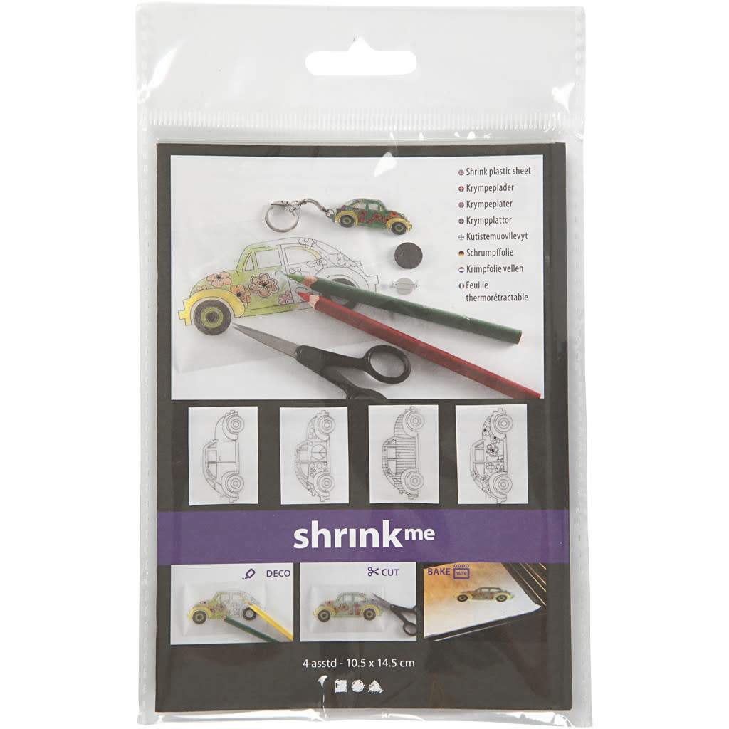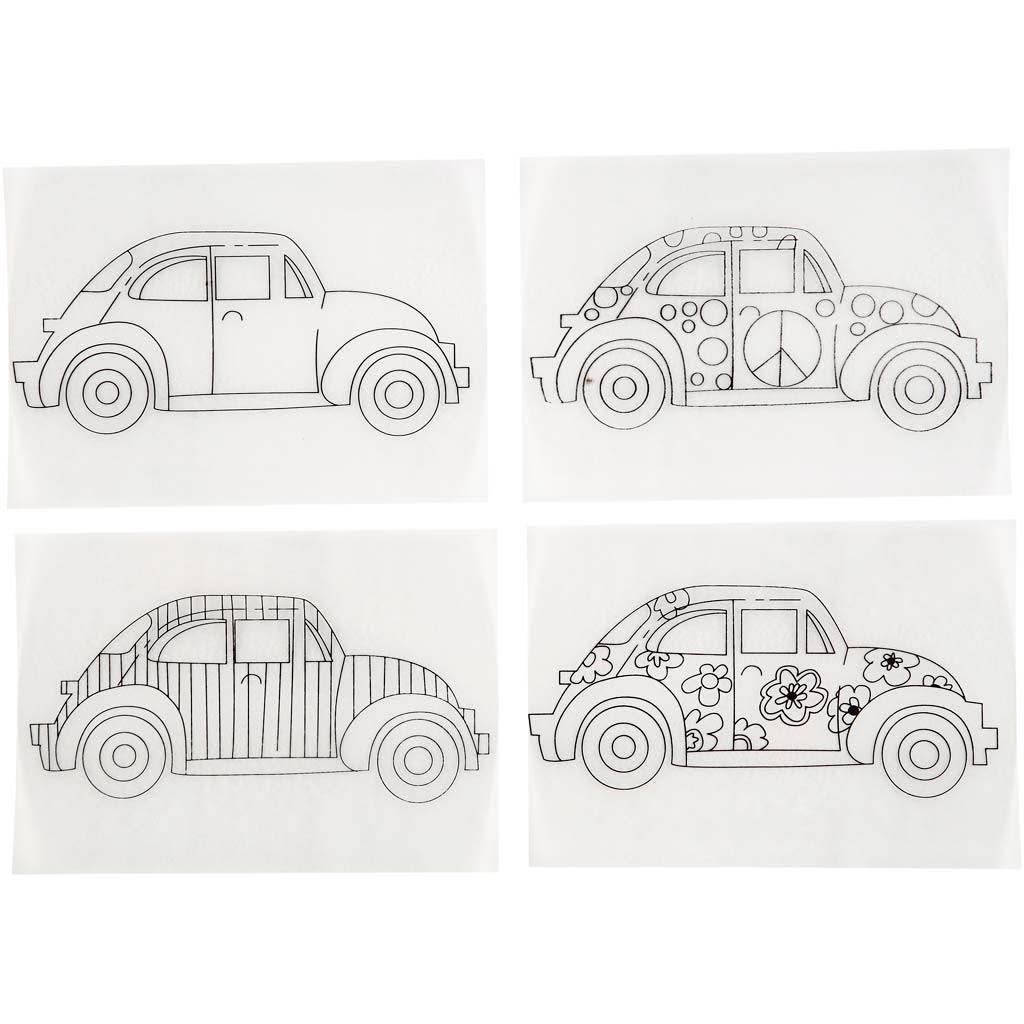 Krimpfolievellen met motieven, auto's, vel 10,5x14,5 cm, 4 assorti vel, mat transparant