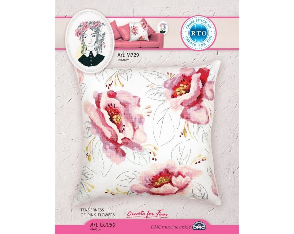 Kruissteekkussen kit "Tederheid van roze bloemen" 40x40 cm