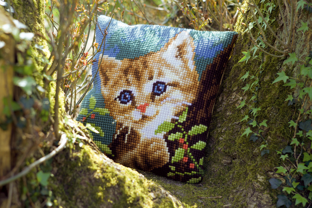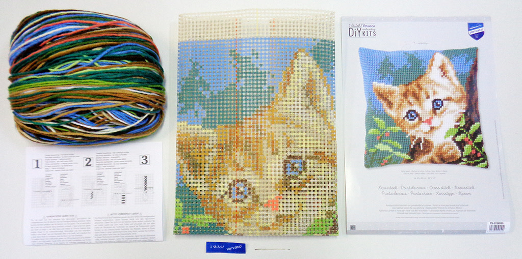 Kruissteekkit, Handgeschilderd grof stramien: 100% katoen, Dik garen: 100% acryl, 18 steken/10 cm, Werkwijze in 8 talen, Naald, Foto, ca. 40 x 40 cm / 16" x 16", Leeftijdscategorie: vanaf 6 jaar, Steken: kruissteek, Aantal kleuren: 13, Moeilijkheidsgraad: Zeer gemakkelijk
