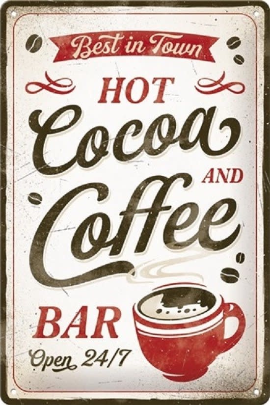 Metalen Wandbord 20x30cm - Hot Cocoa & Coffee