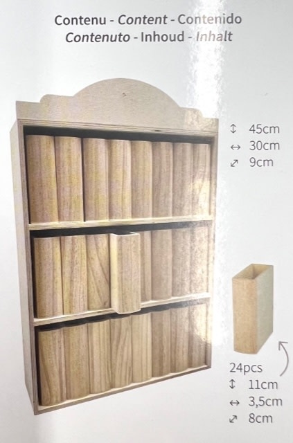 Mini boekenbast met houten boeken "LIBRARY"