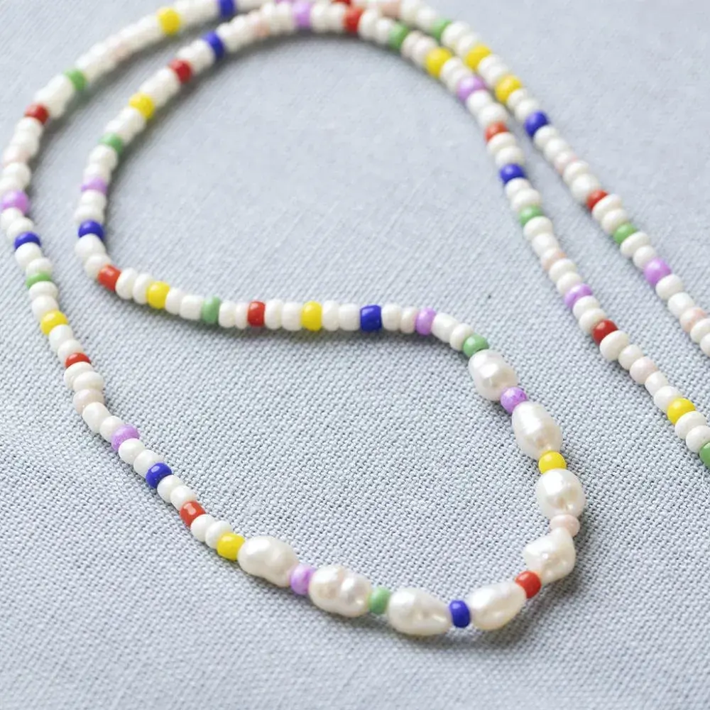 Inhoud: zoetwaterparels, rocailles, elastisch koord en kralennaald.