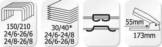 Grote, robuuste Kangaro niettang voor langdurig gebruik. Nietsoort: 24/6-24/8 en 26/6-26/8. keerbare matrijs voor het open en gesloten nieten. Verchroomd metalen apparaat. Capaciteit maximaal 40 vel.