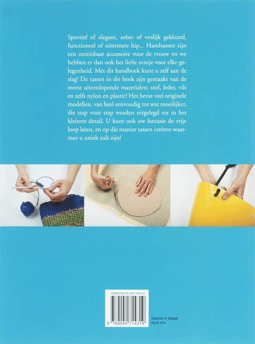 Sportief of elegant, sober of vrolijk gekleurd, functioneel of uitermate hip... Handtassen zijn een onmisbaar accessoire voor de vrouw en we hebben er dan ook het liefst eentje voor elke gelegenheid. Met dit handboek kunt u zelf aan de slag! De tassen in dit boek zijn gemaakt van de meest uiteenlopende materialen: stof, leder, vilt en zelfs nylon en plastic! Het bevat veel originele modellen, van heel eenvoudig tot wat moeilijker, die stap voor stap worden uitgelegd tot in het kleinste detail. U kunt ook uw fantasie de vrije loop laten, en op die manier tassen creëren waarmee u uniek zult zijn!