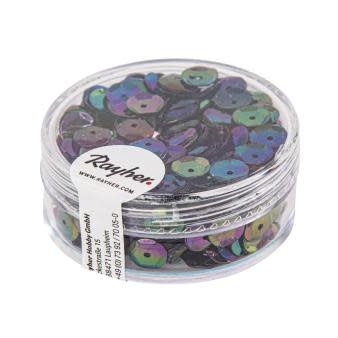 Pailletten, 6mm ø, schotel, doosje à 6 g, wasbaar, iris. zwart