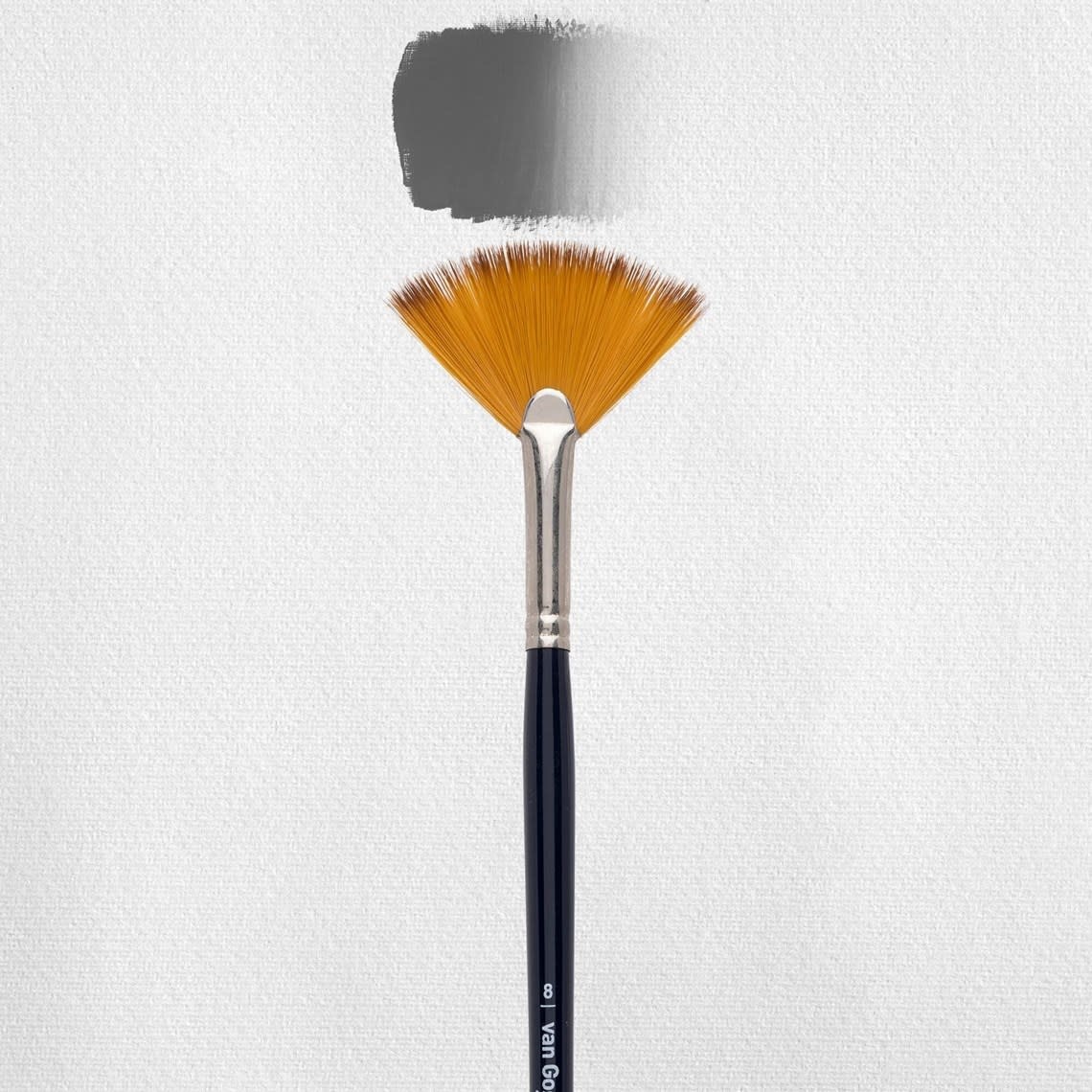 Dit met zorg gemaakte en met de hand gevormde penseel voor olie- en acrylverf heeft een flexibele haarbundel die bestand is tegen slijtage. Door de flexibiliteit van de gouden synthetische haarbundel is dit penseel bijzonder geschikt voor acrylverf, aangezien acrylverf normaal gesproken in een vloeibaarder consistentie wordt gebruikt. Deze waaiervormige haarbundel is ideaal om kleuren te mengen of om speciale effecten toe te voegen. De breedte van de haarbundel op dit penseel is 53,0 mm
