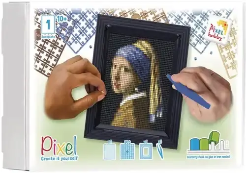 Een exclusieve Pixelhobby-geschenkverpakking voor het maken van een pixelkunstwerk van het iconische schilderij Meisje met de parel van Johannes Vermeer. De set bevat 30 pixelmatjes in zorgvuldig samengestelde kleuren, waarmee je dit meesterwerk in pixelvorm tot leven brengt.