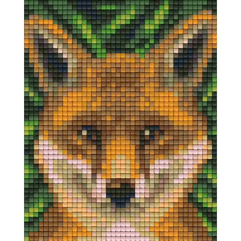 Complete pixelhobby set om een afbeelding van een vos te maken in een donkergroene lijst
