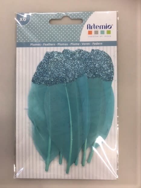 pluimen lichtblauw met glitter 6st.