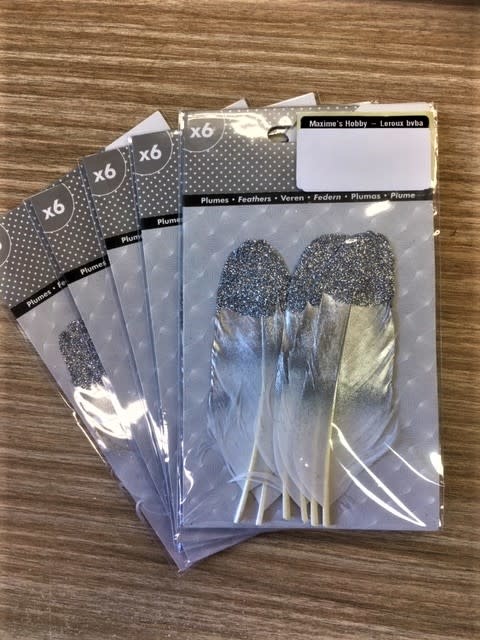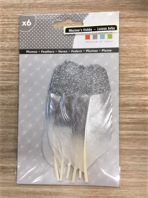 Pluimen zilverkleurig 6st.