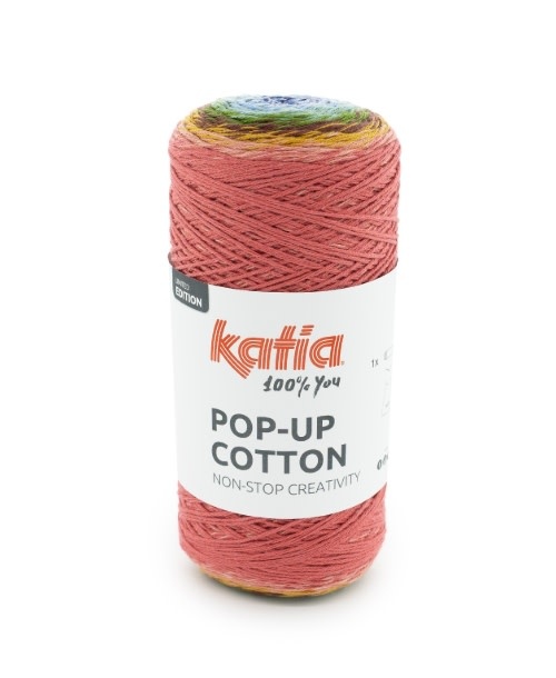 Laat je verrassen door Katia Pop-Up Cotton, een moulinégaren met een perfect cyclisch patroon en speelse, symmetrische kleurovergangen. Met slechts één bol kun je een damestop of een meisjesjurkje breien. Ideaal voor snelle, kleurrijke en toegankelijke projecten. Geniet van moeiteloos handwerk en maak unieke kledingstukken met je eigen handen.