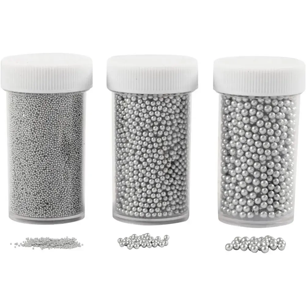 Ronde mini stenen van glas, 3 maten, Zilverkleur