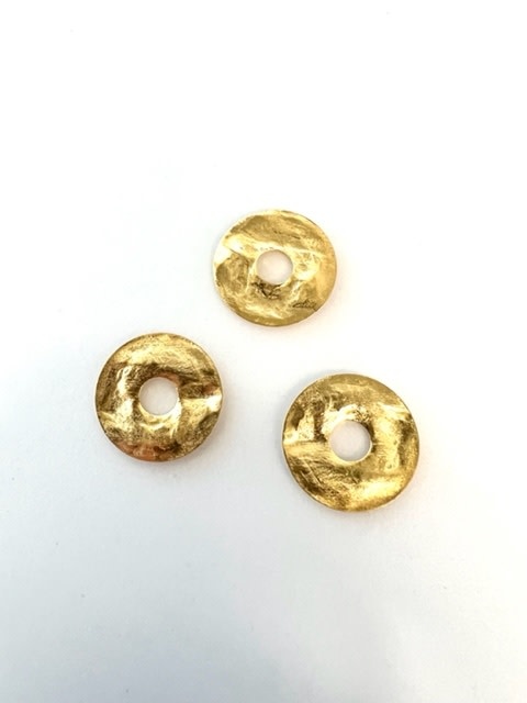 Ronde schijf met opening in midden 20mm goudkleurig gehamerd 3 stuks