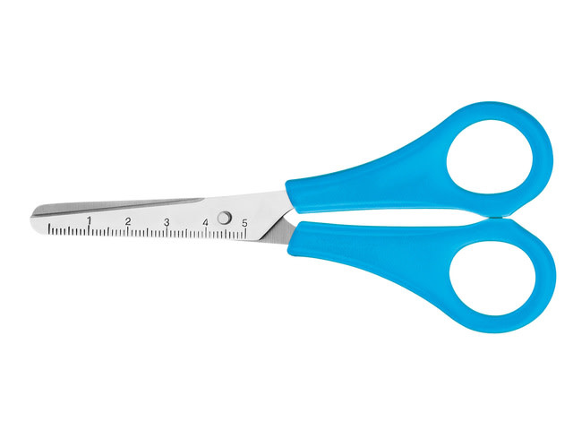 Kinderschaar, 13cm. Met ronde punt. Geschikt vanaf 4 jaar. Voorzien van 5 cm schaalindeling. Kleur blauw.