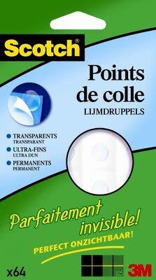 Scotch® Permanente Lijmdruppels Transparant. Kleeft sterk en kan schoon verwijderd worden. Ideaal voor verticale toepassingen.