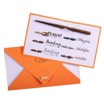 Etui in karton met 1 pennenhouder in hout, 6 pennen : Sténo, Ecolière, Index, Plakat,(10mm), Bandzug (1,5/3mm)
