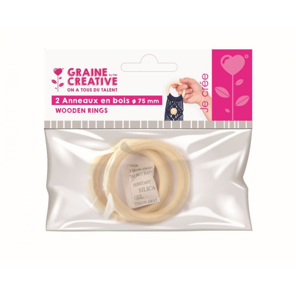 2 houten ringen 75 mm voor macramé-hangers en alle soorten creaties