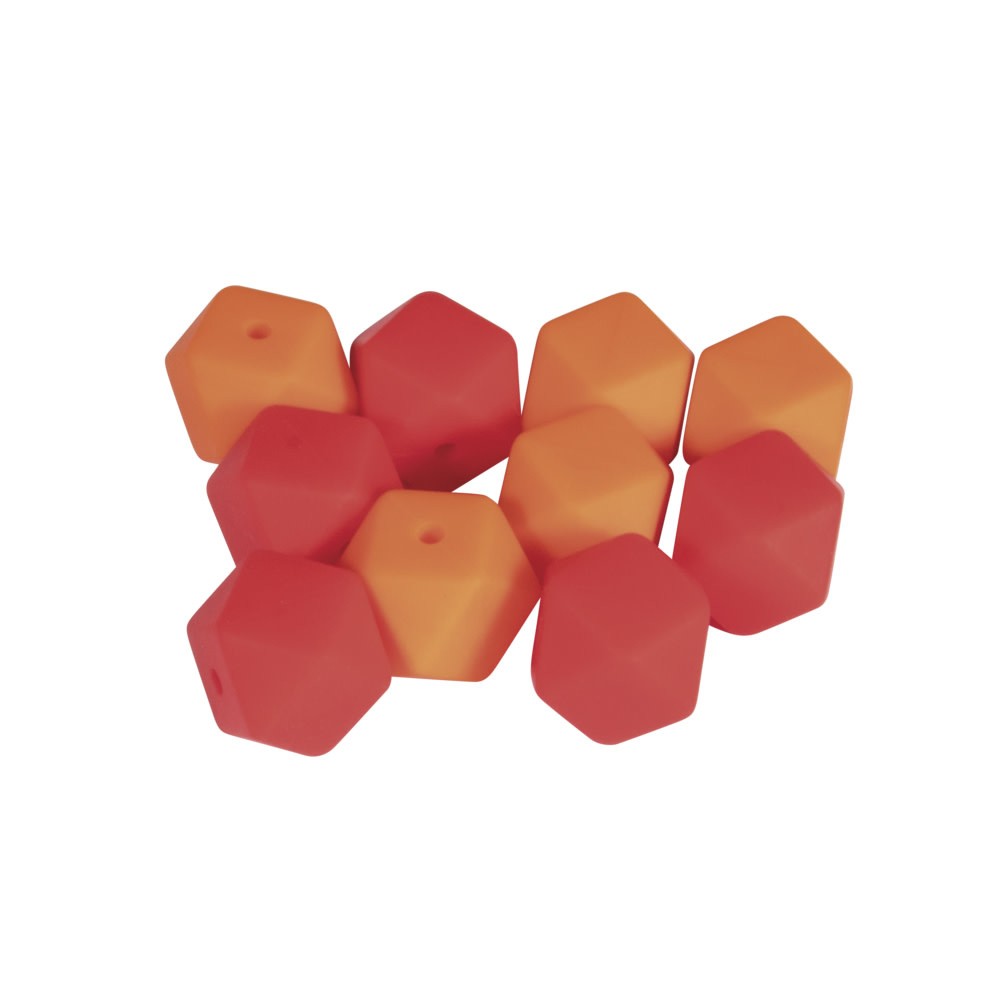 Siliconekralen hexagon rood-oranje 14mm 10st.