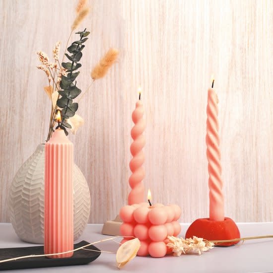 Maak je eigen kaarsen met deze siliconen kaarsen mal. Plaats de mal op een platte ondergrond, zet de lont in de kaarsenmal met een hulpmiddel en vul de mal met gesmolten kaarsenwas, zo blijft je lont altijd recht en strak in de vorm. Je kaarsen zijn na uitharden gemakkelijk uit de mal te verwijderen en opnieuw te gebruiken.