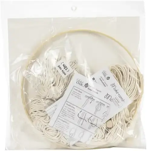 Deze macramé kit beschikt over unieke patronen om een ring met geknoopte libel te knopen. Hang in een kamer om flair in je interieur toe te voegen! Dit pakket bevat katoenen koord, ring van natuurlijk hout en geïllustreerde instructies. De afmeting is de maat van het werk nadat deze af is, dikte: 3 mm