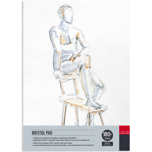 Wit universeel papier met gladde, zijdematte oppervlak. Het papier is zuurvrij, veroudering bestendig en veegvast en maakt indruk met zijn hoge dekking. Blokinhoud 50 vel, 180gr, kopgelijmd. Naast grafiet en stiften, bijzonder geschikt voor markers, inkten en airbrush toepassingen.